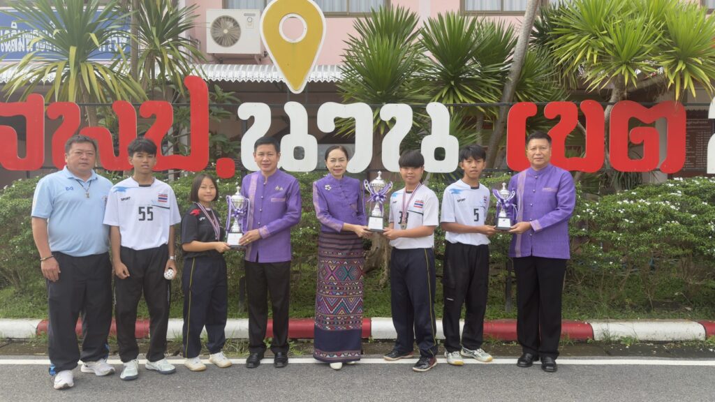 วันที่ 3 ตุลาคม 2568 เวลา 08.00 น. ดร.นฤมล สุภาทอง ผู้อำนวยการสำนักงานเขตพื้นที่การศึกษาประถมศึกษาน่าน เขต 2 พร้อมด้วยนายวรภพ รินฤทธิ์ รอง ผอ.สพป.น่าน เขต 2 ร่วมแสดงความยินดีและชื่นชมกับนักกีฬาฟลอร์บอล ทีมจังหวัดน่าน ได้แก่ เด็กชายชินรัชช์ ปัญญางาม นักเรียนชั้นมัธยมศึกษาปีที่ 3 โรงเรียนบ้านส้าน (คุรุราษฎร์รังสรรค์) อ.ปัว จ.น่าน ที่ได้รับรางวัลชนะเลิศถ้วยพระราชทาน รุ่นอายุไม่เกิน 18 ปี ชาย และเด็กหญิงกรรณิการ์ แซ่โซ้ง นักเรียนชั้นมัธยมศึกษาปีที่ 2 โรงเรียนบ้านส้าน (คุรุราษฎร์รังสรรค์) อ.ปัว จ.น่าน ที่ได้รับรางวัลรองชนะเลิศอันดับ 2 รุ่นทั่วไป หญิง ซึ่งมีนายกฤตณ์ ปัทถาพงษ์ เป็นครูผู้ฝึกสอน และเด็กหญิงเขมนันท์ อินปา นักเรียนชั้นประถมศึกษาปีที่ 5 โรงเรียนบ้านปางยาง อ.ปัว จ.น่าน ได้รับรางวัลชนะเลิศ รุ่นอายุไม่เกิน 18 ปี หญิง โดยมีนายเกรียงไกร สิทธิวุฒิ เป็นครูผู้ฝึกสอน